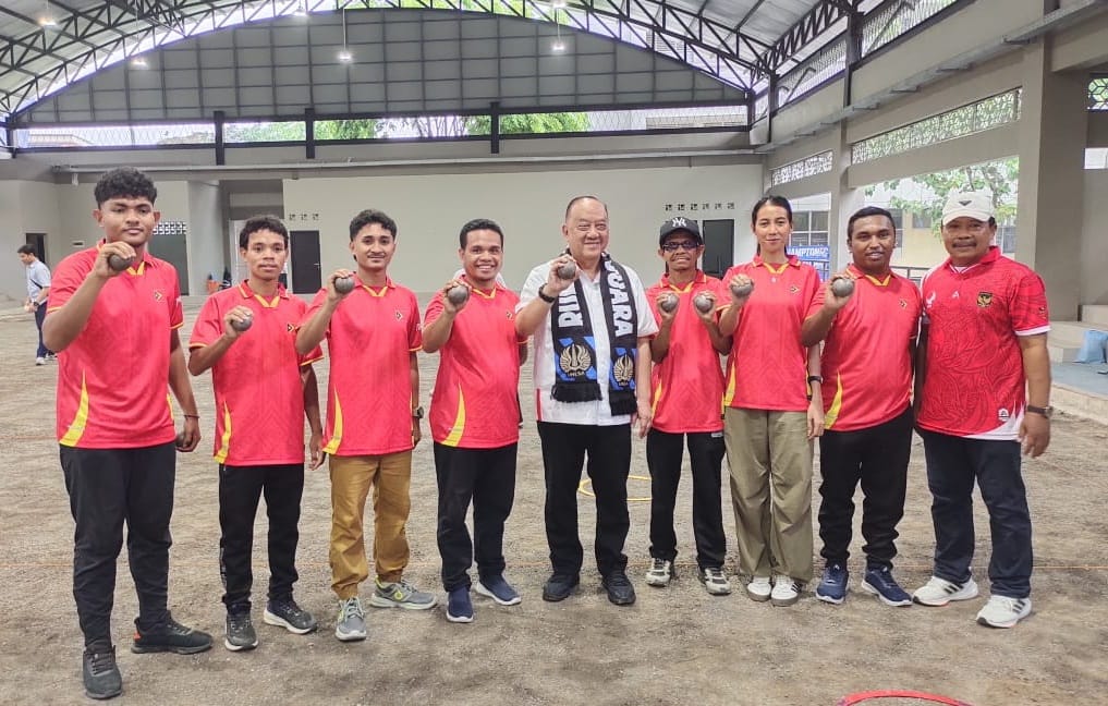 Apresiasi Ketum KONI Pusat dibuktikan banyak hal, selain pelatihan, juga dukungan Unesa memberikan peralatan latihan berupa 7 set bola besi (Bosi), 7 buah bola kayu (Boka), dan 2 unit circle, di lapangan Petanque Unesa, 22 Oktober 2025.