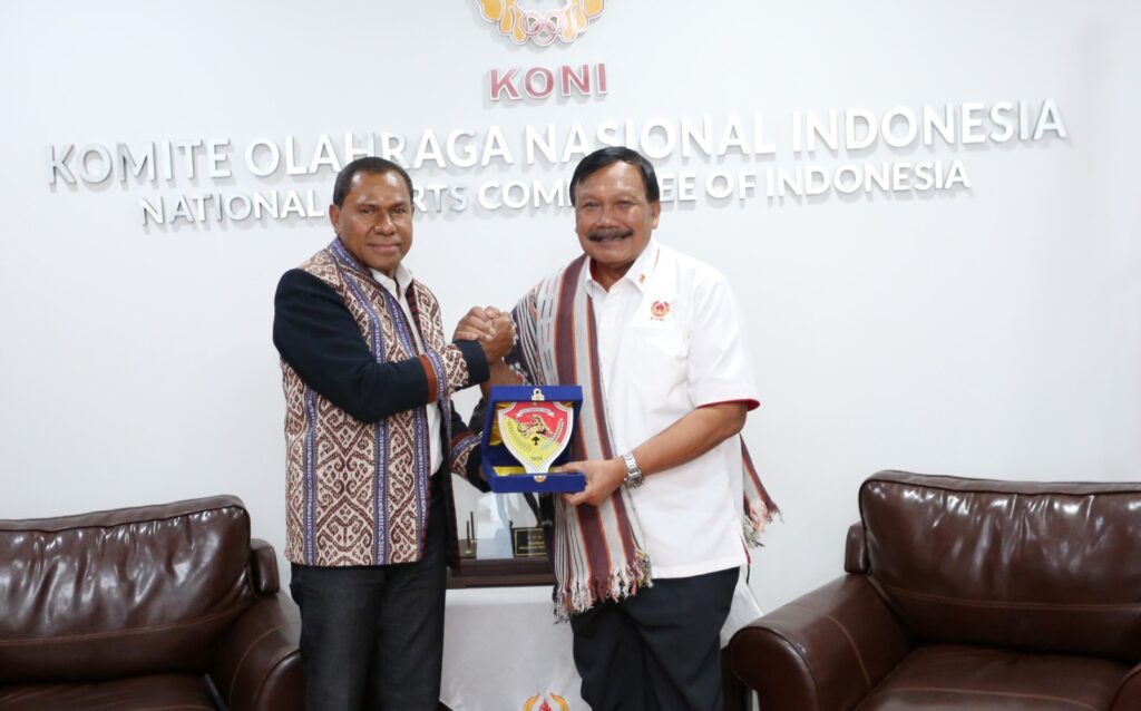 Wakil Ketua Umum (Waketum) I Komite Olahraga Nasional Indonesia (KONI) Pusat, Mayjen TNI (Purn) Dr. Suwarno, S.IP., M.Sc., menerima kunjungan kerja Wakil Gubernur Nusa Tenggara Timur (NTT), Irjen Pol (Purn) Drs. Johni Asadoma, M.Hum., pada Senin, 15 Desember 2025, di Kantor KONI Pusat, Senayan, Jakarta.